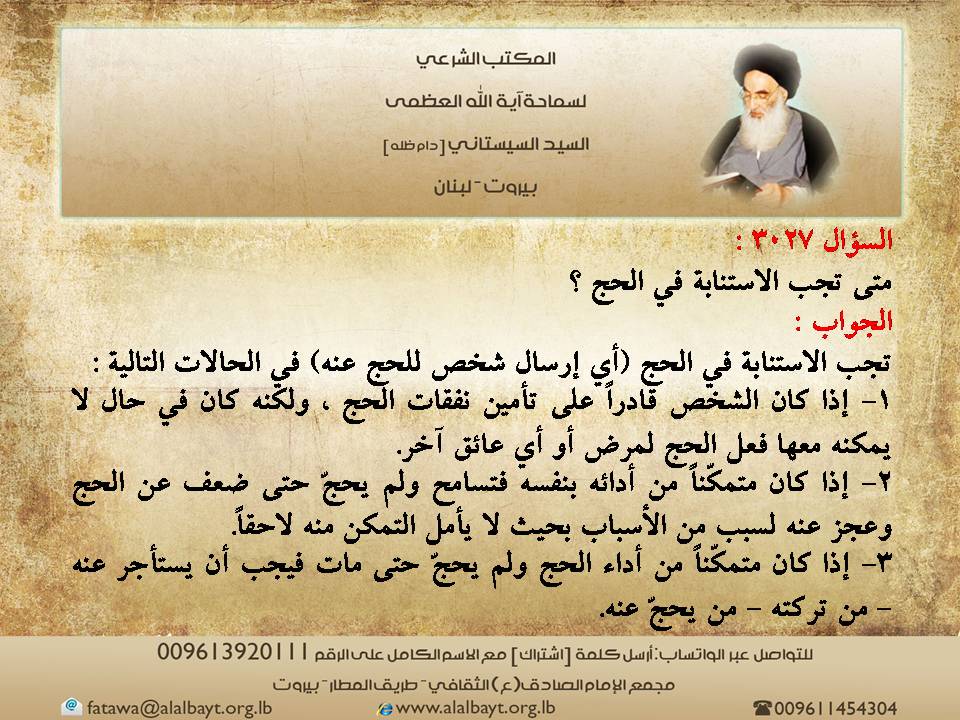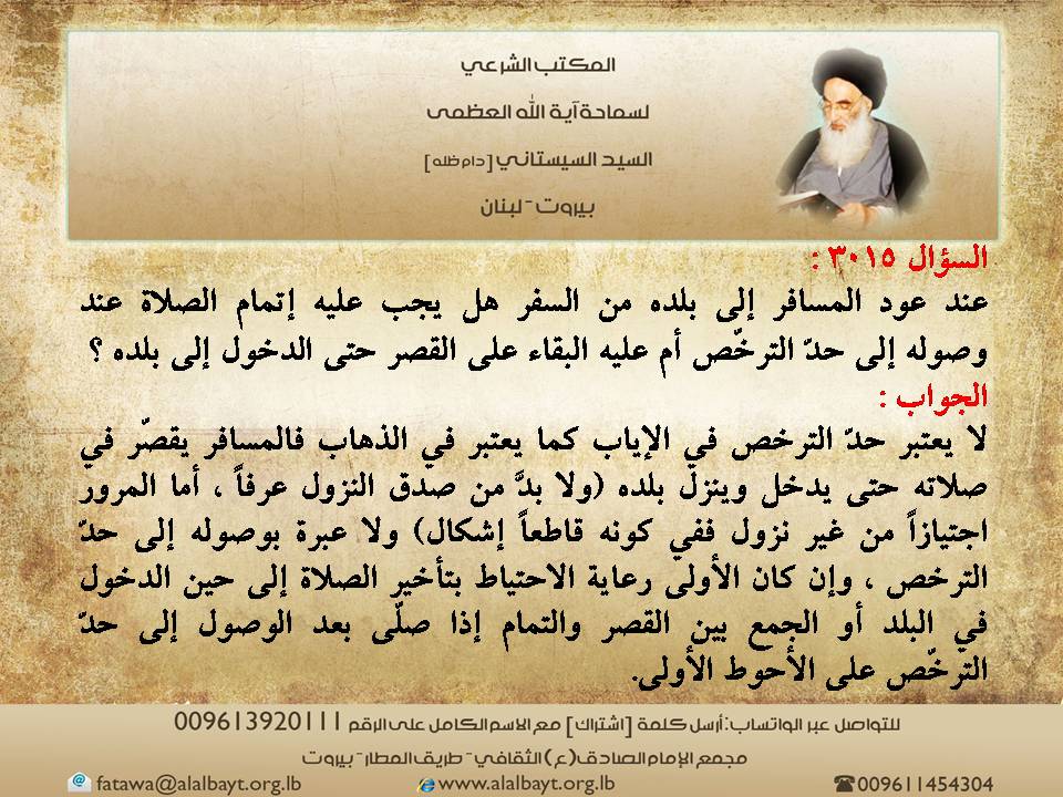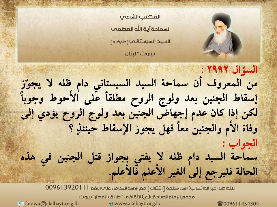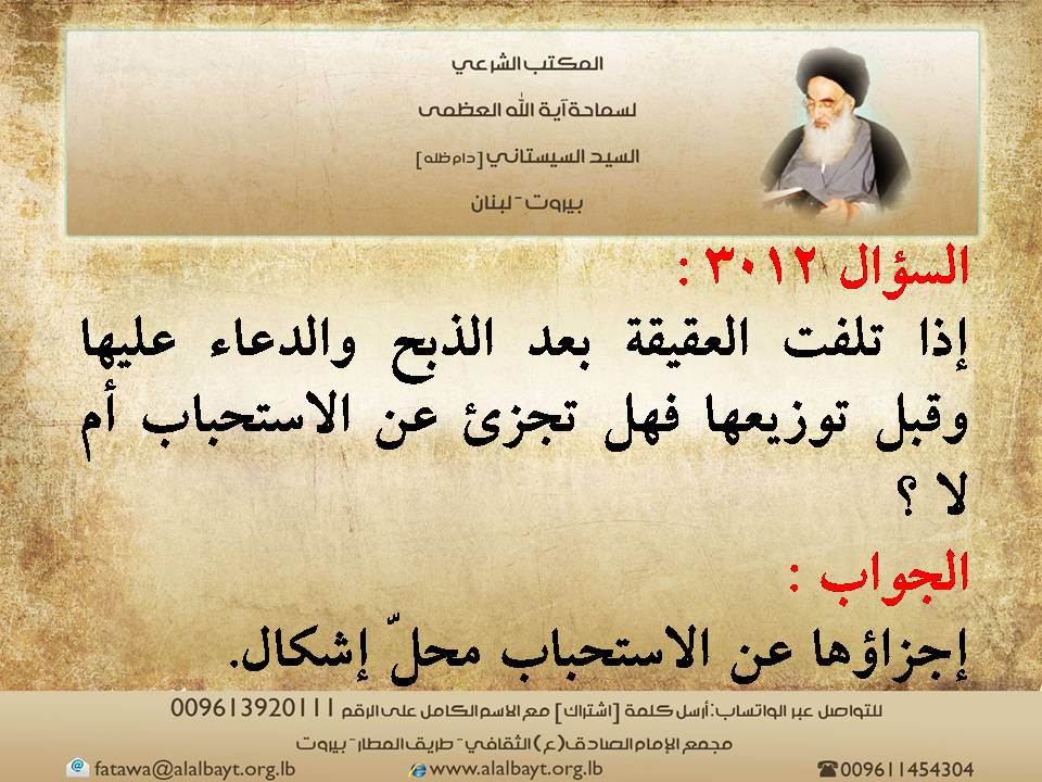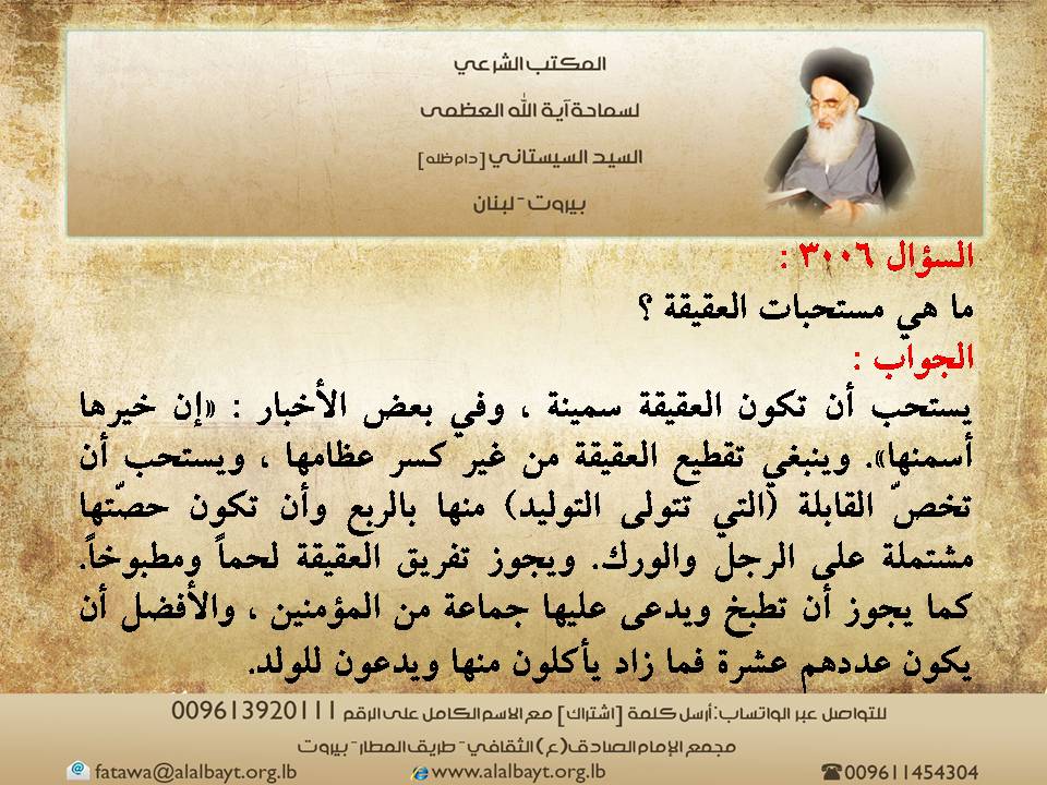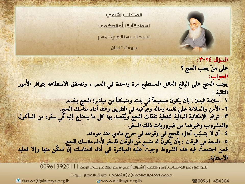 بادر المكتب الشرعي لسماحة السيد السيستاني (دام ظله) في بيروت إلى تقديم خدمة توزيع الاستفتاءات عبر الواتساب للمشتركين، حيث تجاوز عددهم عدة آلاف مشترك. تصلهم يومياً الاستفتاءات عبر هواتفهم الجوالة.