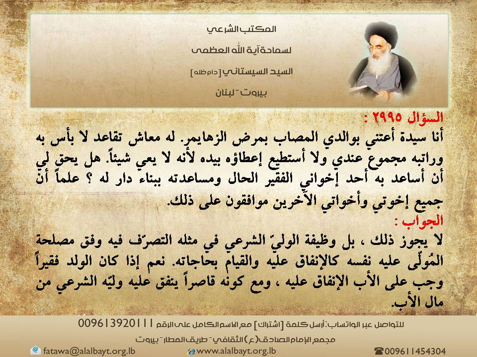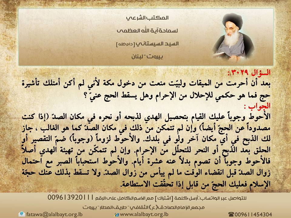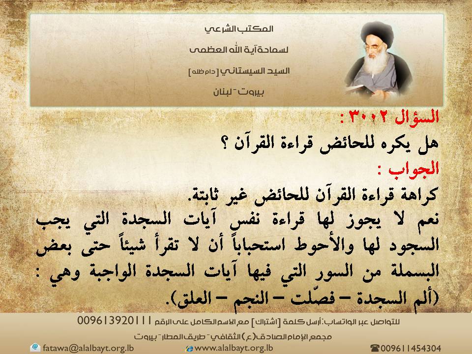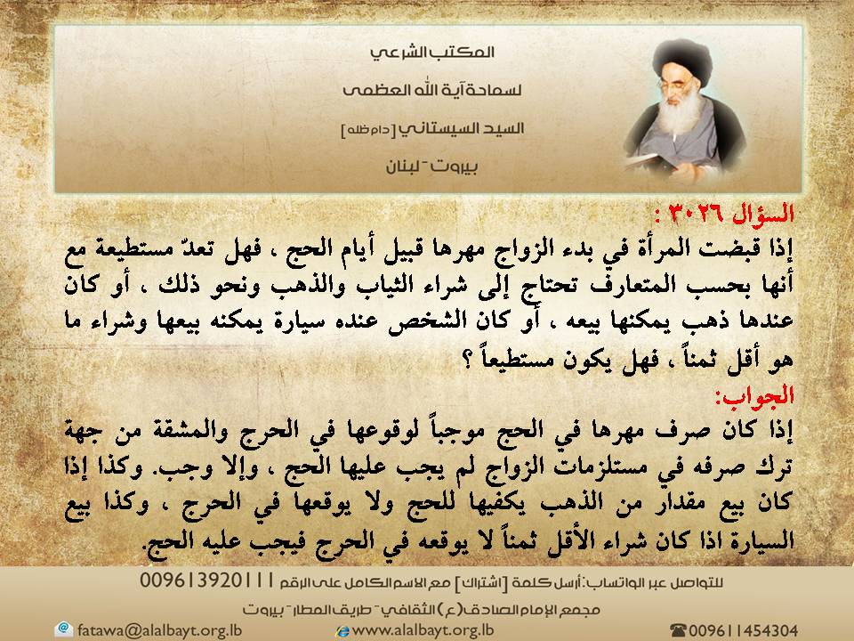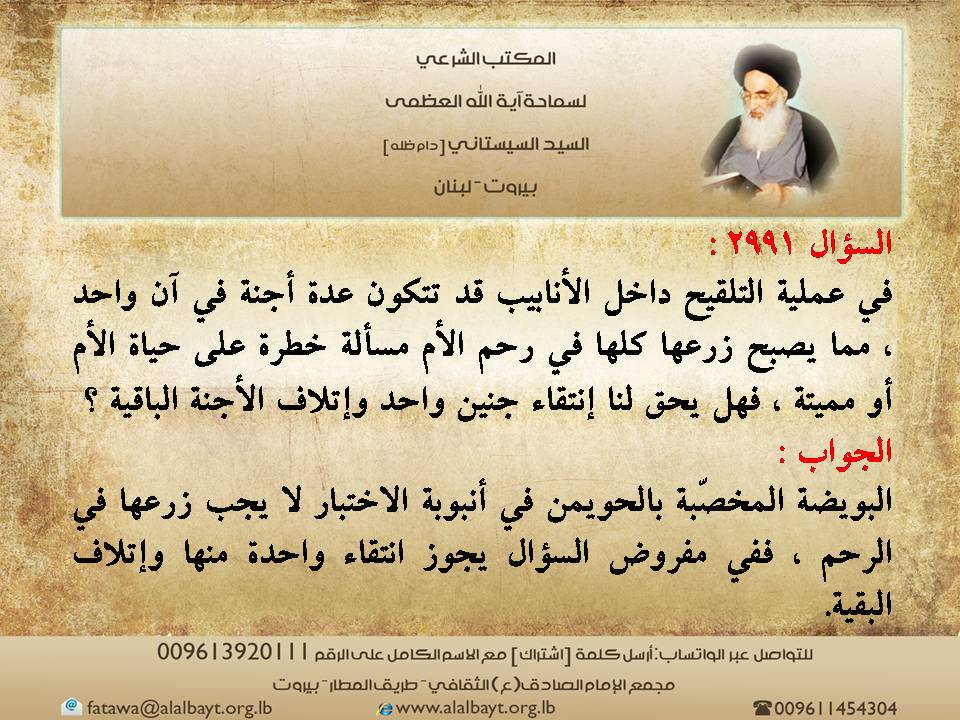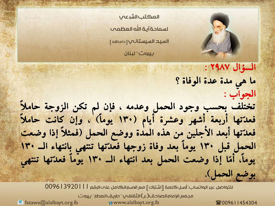 بادر المكتب الشرعي لسماحة السيد السيستاني (دام ظله) في بيروت إلى تقديم خدمة توزيع الاستفتاءات عبر الواتساب للمشتركين، حيث تجاوز عددهم عدة آلاف مشترك. تصلهم يومياً الاستفتاءات عبر هواتفهم الجوالة.