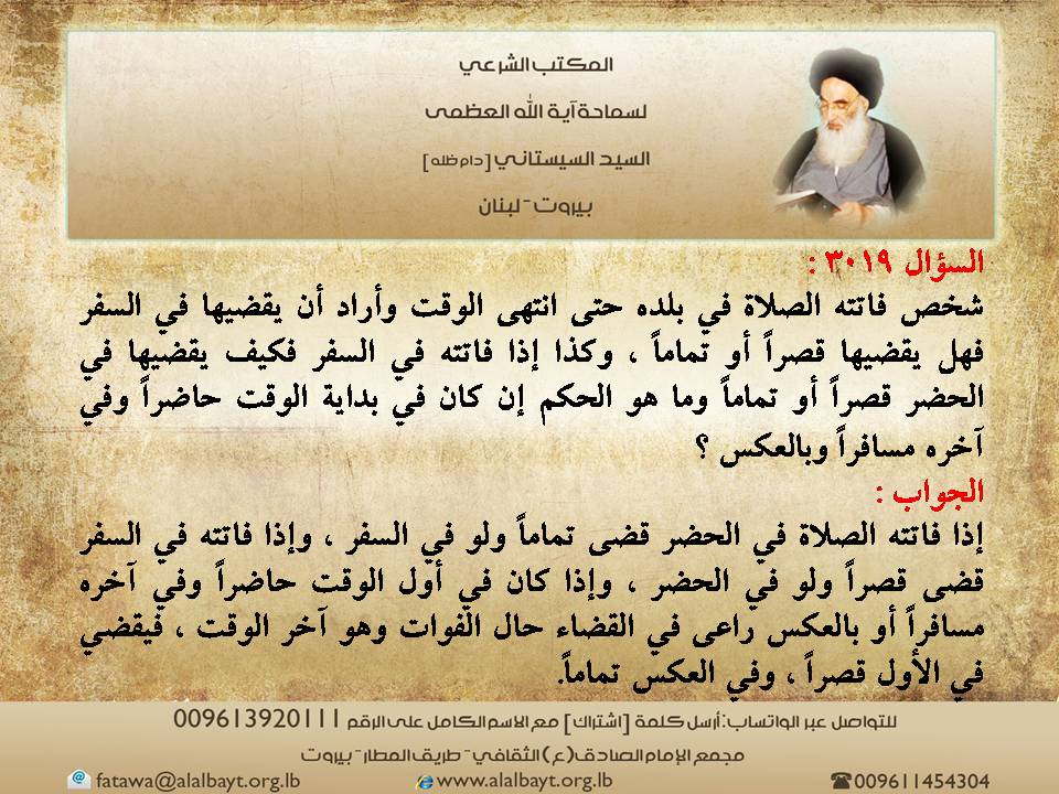 ما هو الحكم إذا دخل الوقت في بلده ولم يصلِّ حتى سافر فهل يصلّي تماماً أو قصراً وكذا العكس إذا كان مسافراً عند دخول الوقت لكنه لم يصلِّ حتى دخل إلى بلده ؟