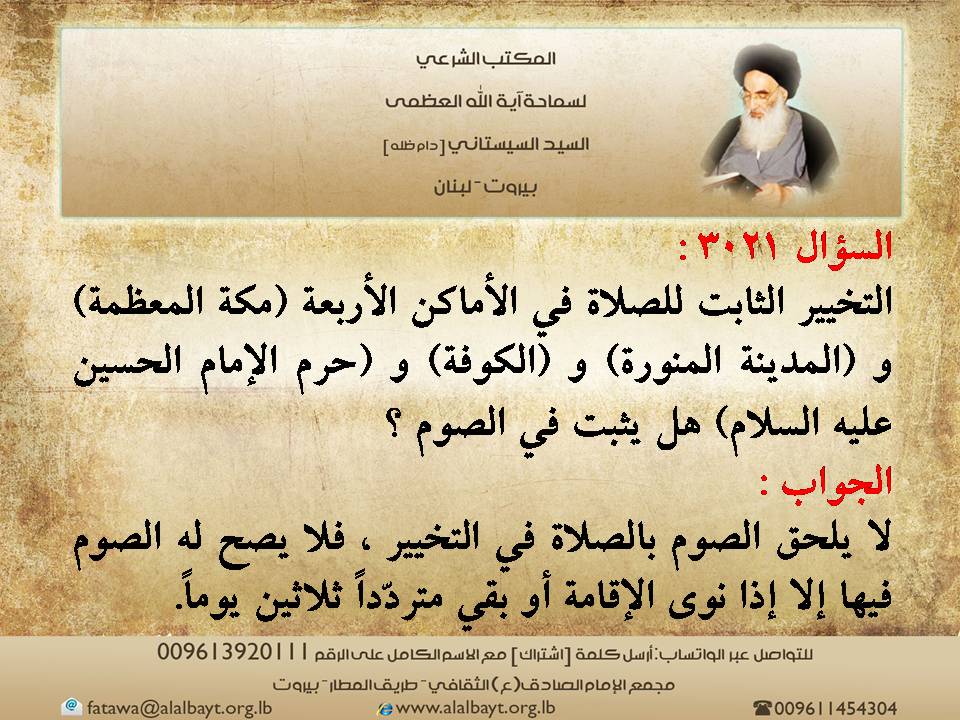 التخيير الثابت للصلاة في الأماكن الأربعة (مكة المعظمة) و (المدينة المنورة) و (الكوفة) و (حرم الإمام الحسين عليه السلام) هل يثبت في الصوم ؟