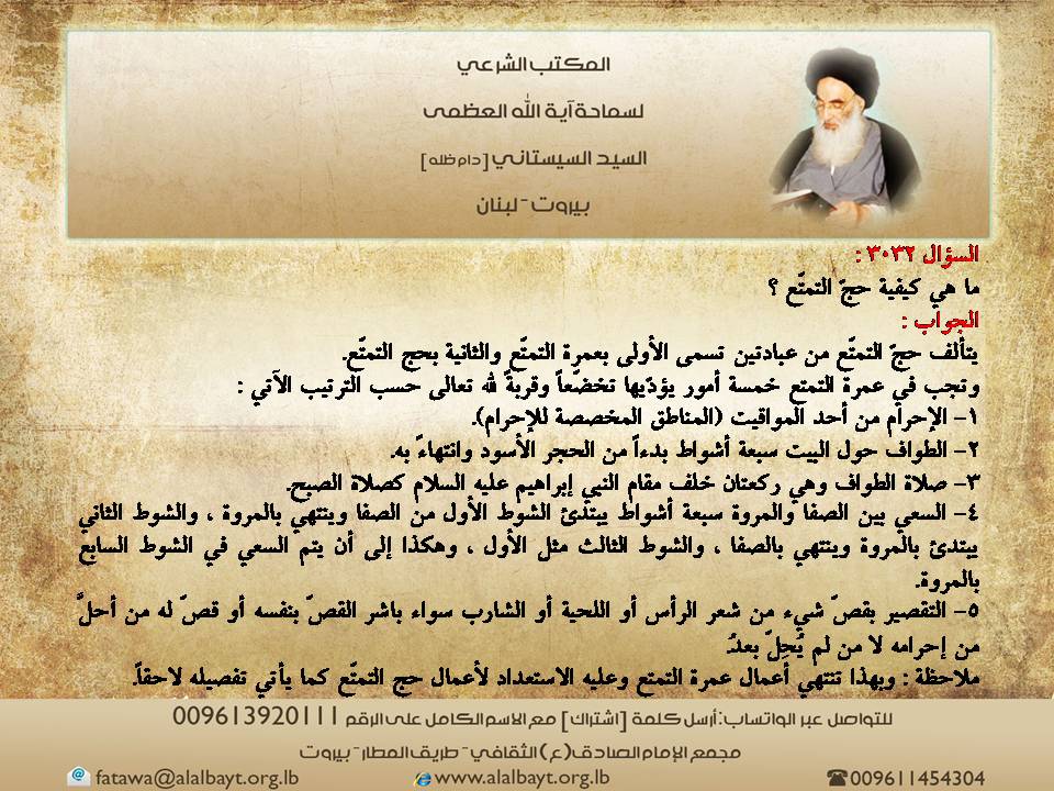 ملاحظة : وبهذا تنتهي أعمال عمرة التمتع وعليه الاستعداد لأعمال حج التمتّع كما يأتي تفصيله لاحقاً.